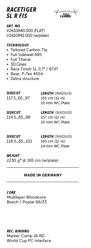 VOLKL RACETIGER SL R FIS WC-PLATE+C16 26-27